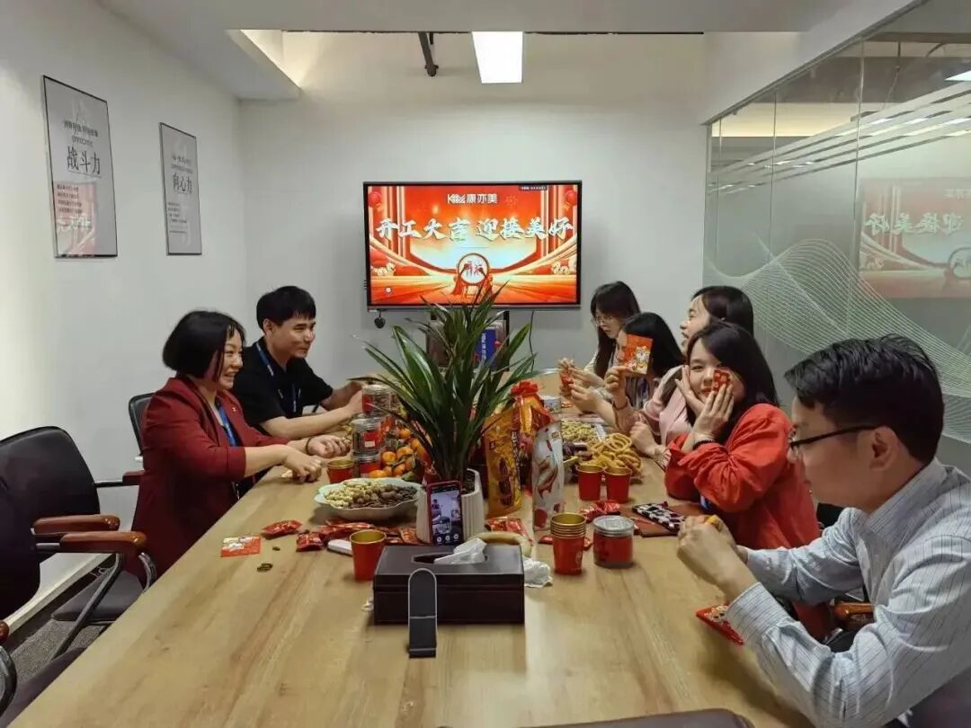 2024年2月21日,农历正月十二,广州康亦美犹如凤凰涅槃,于新春之际展翅翱翔,迎来了新年的首个工作日。开工现场气氛火爆,如同盛宴般的热闹,一大早,大家回到办公室看到精心布置的新年装饰,听着激昂喜庆的音乐起舞,带着新年的喜悦互相祝福,以饱满的精力和昂扬的斗志,再次踏上新的征程,致力于推动公司发展再上新台阶。