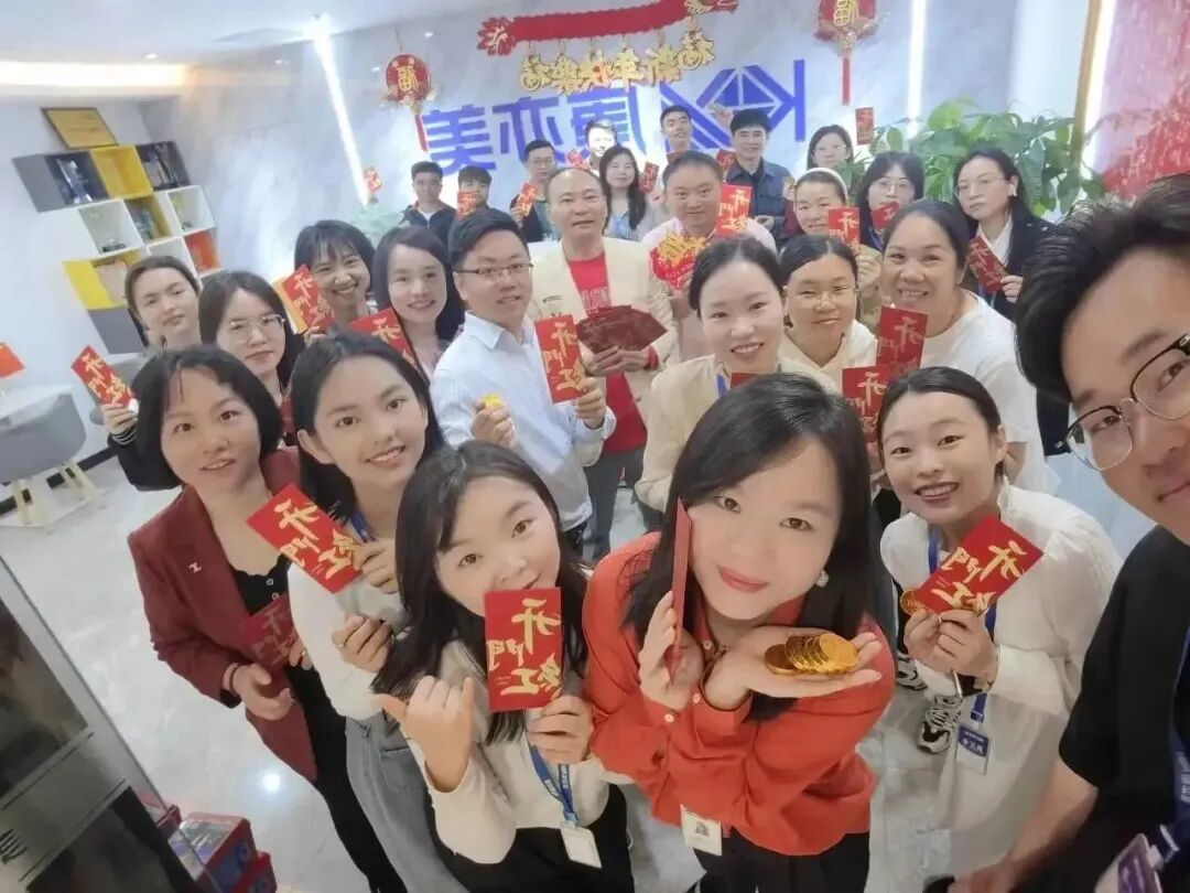 广州康亦美董事长曹云华以春风化雨般的关爱,为每位员工派发开工红包,并送上新春的祝福和感谢。他勉励大家在新的一年,提振信心,收心归位,齐心同力,业务搞钱,公司赚钱,大家分钱。